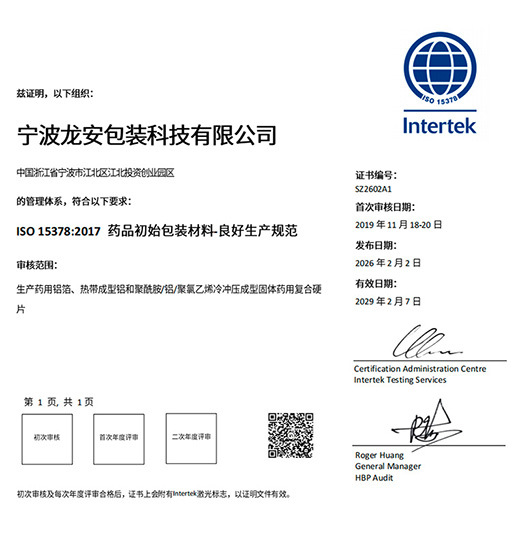 宁波龙安包装科技有限公司是专业从事药品包装材料的生产和经营的新型企业。我们通过了ISO9001认证、ISO15378(GMP)认证、DMF备案、国家CDE产品备案。自2007年公司成立以来,经过吉瑞尔人不懈的努力,我们现在已经发展成行业内具有一定影响力的公司。